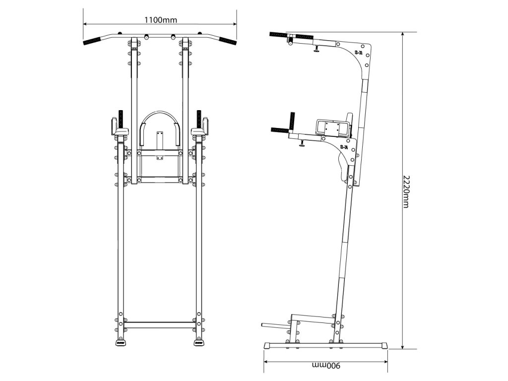 Multifunkčná stanica, ktorá Vám umožní dokonale precvičiť celé telo obsahuje: Bradlá Hrazdu Úchyty na kliky