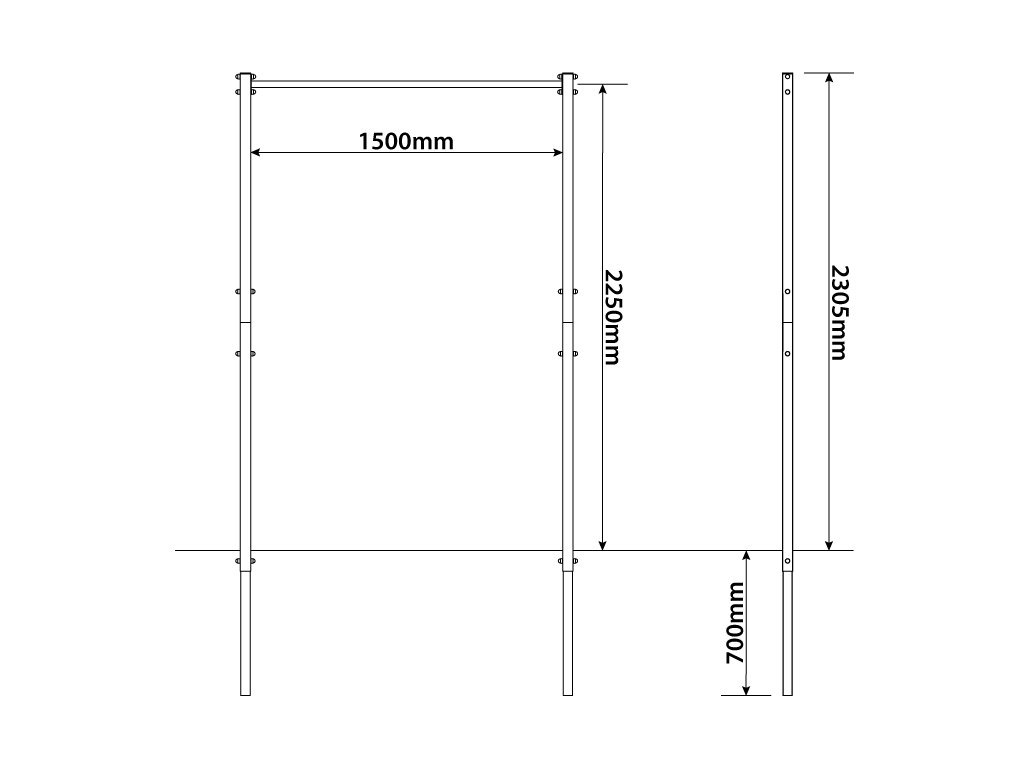 Jednoduchá konštrukcia hrazdy určená na montáž a ukotvenie v exteriéry. Umožní precvičovať paže, ramená, brucho a obsahuje tiež oko na zavesenie boxerského a TRX príslušenstva.