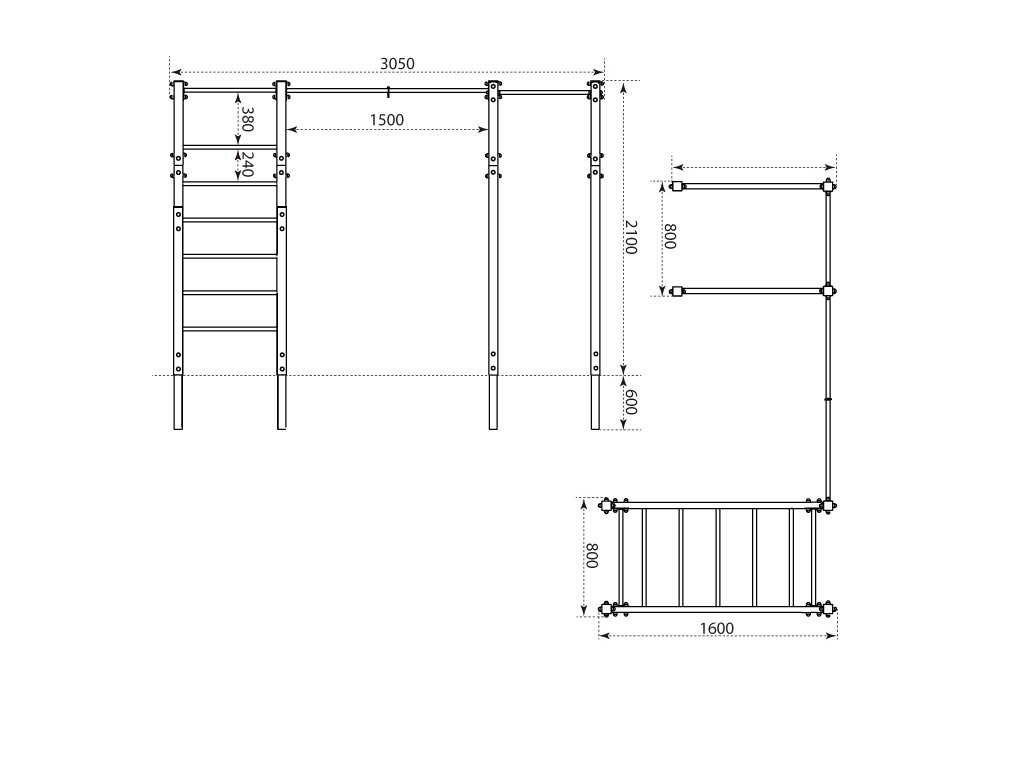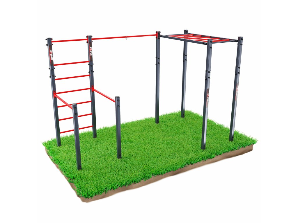 Skladá sa z hrazdy, rebrín, vodorovného rebríka a priečky na zavesenie boxerského vreca
