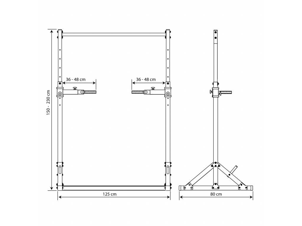 - výška hrazdy nastaviteľnmá od 150 do 230cm, regulácia po 10cm